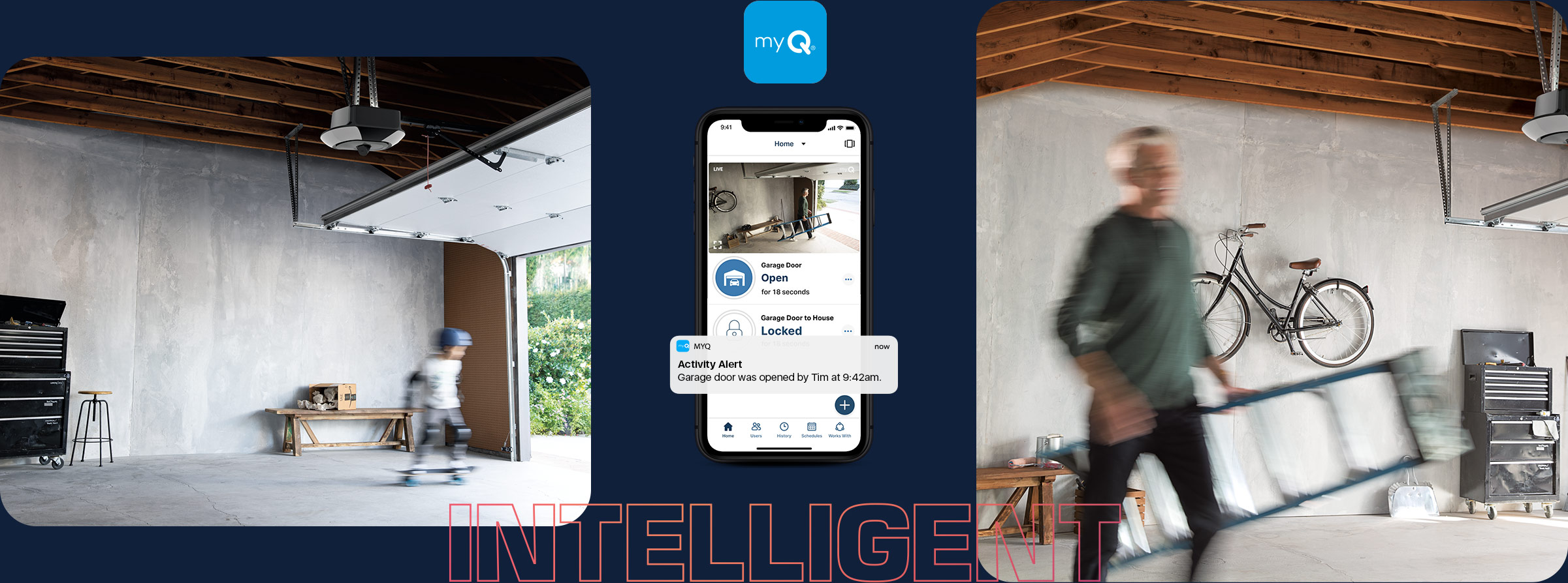 Smart starts in the garage. Integrated myQ technology lets you control, secure and monitor your garage from the myQ app - anytime, from anywhere. Openers with a built-in camera add streaming video, recorded events, motion detection and 2-way communication to the myQ app so you can see what’s happening and ensure your family and prized possessions are safe and secure. That’s peace of mind right in the palm of your hand.