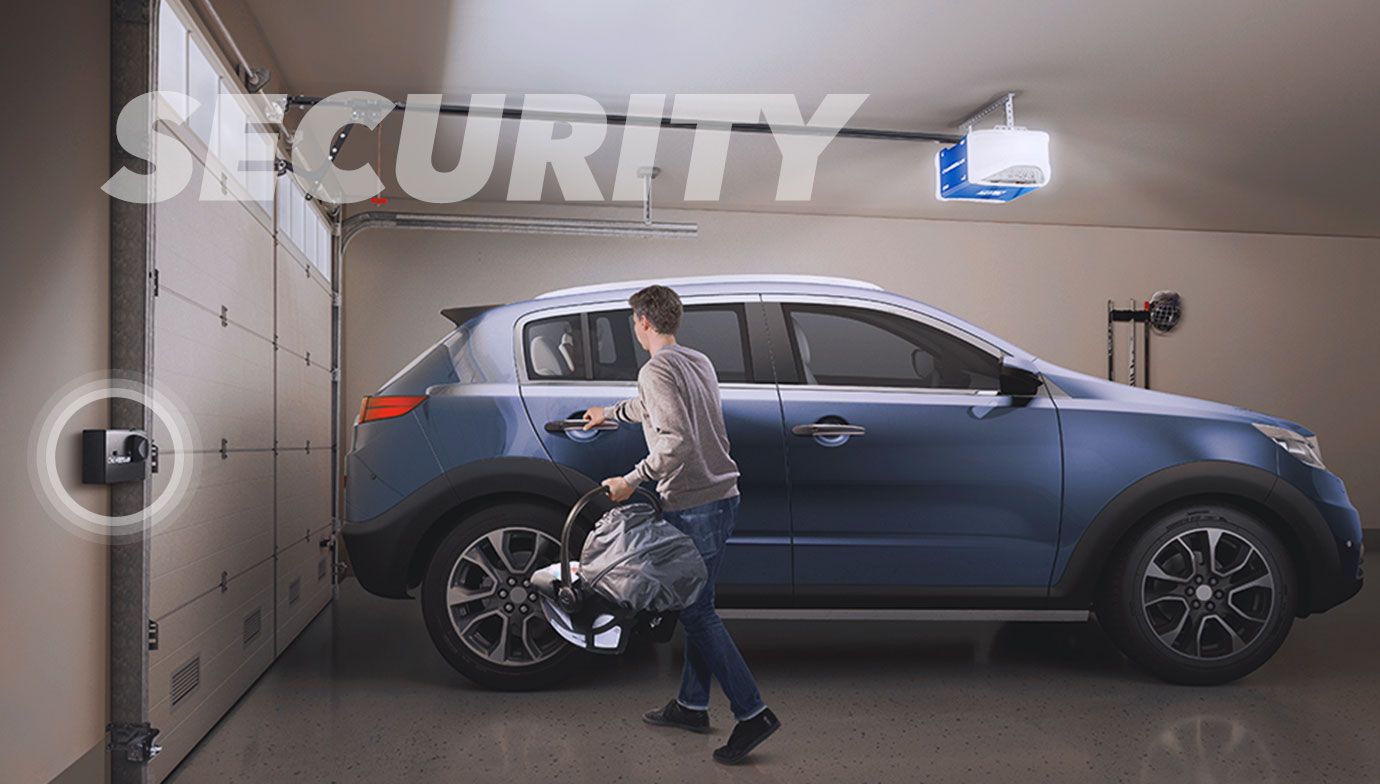 Deadbolt automatically engages when the garage door closes, keeping the door locked down.